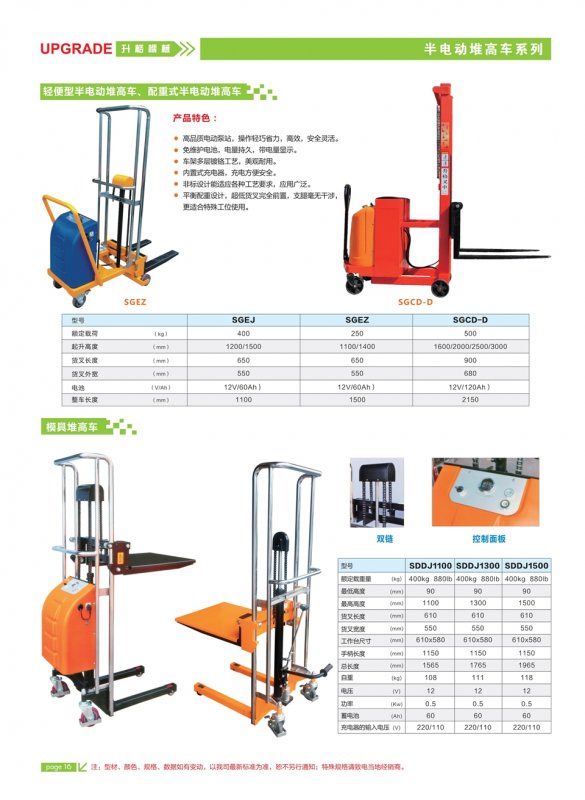 升格叉車(chē)進(jìn)一步完善整車(chē)、配件、維修一條龍服務(wù)。年銷(xiāo)量一直位居同行業(yè)前茅。為很多國(guó)際知名制造業(yè)、第三方物流業(yè)、零售業(yè)提供合理的